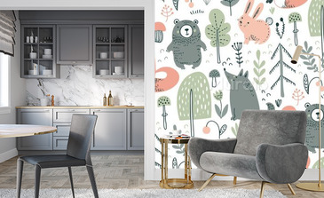 Fototapeta Dla dzieci – Leśne zwierzątka i roślinki