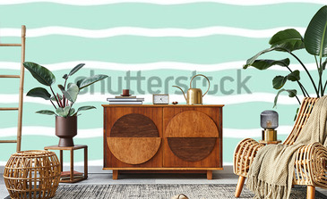 Tapeta Białe Paski na Tle Zielonej Mięty