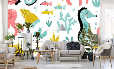 Tapeta Dla Dzieci - Morskie Zwierzątka w Stylu Skandynawskim