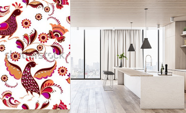 Tapeta Ptaki z kwiatami w stylu folklor