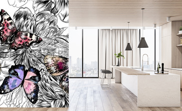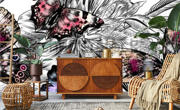 Tapeta Ścienna motyle, kwiaty, rośliny, przedpokój